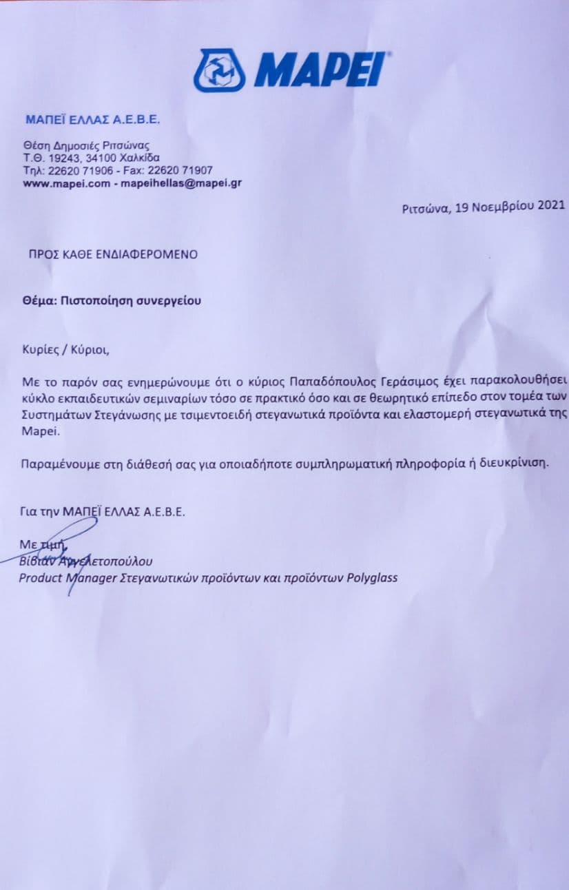 Απόδειξη για το άριστο αποτέλεσμα οι συνεργασίες μας με επώνυμες εταιρείες του χώρου των μονωτικών υλικών.